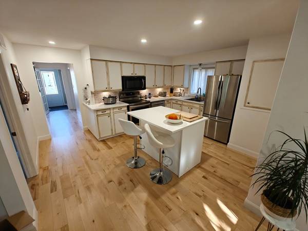 - Large open-concept kitchen and dining room, new quartz countertops and island