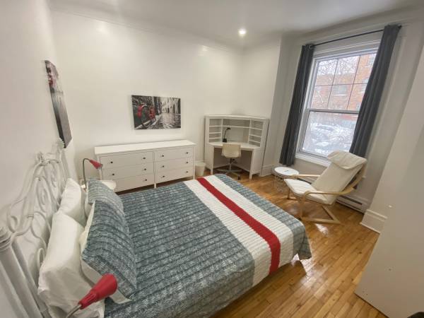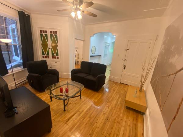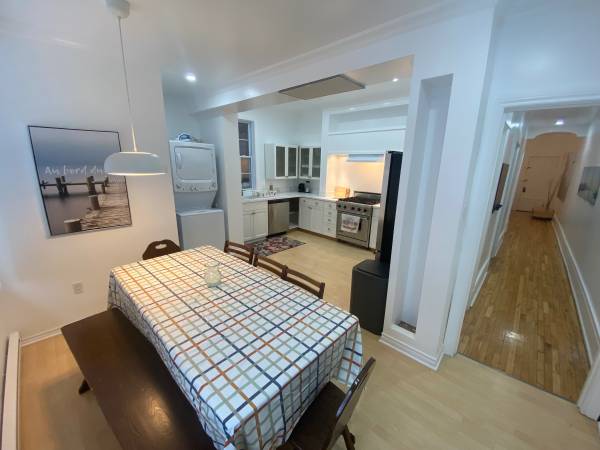 Large bright renovated tastefully furnished 1500 sq ft character main floor triplex front and back porch and front yard and rear courtyard new gourmet kitchen all new appliances and laundry...