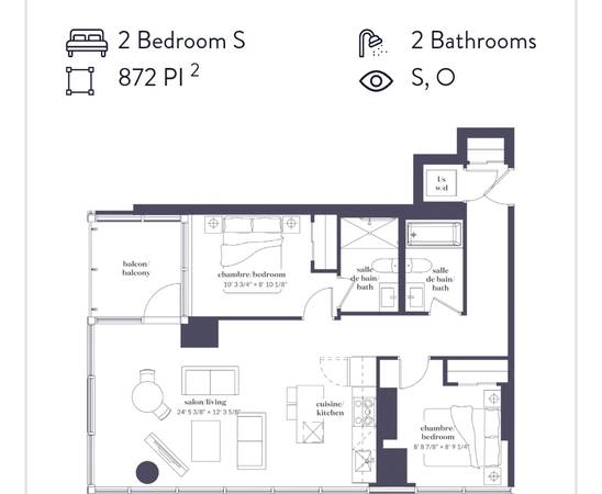 *** GET ONE MONTH FREE *** Prestige 2-bedroom, 2-bathroom condo (4 1/2) for sublet in Downtown Montreal (Ville-Marie), located at 1180 Rue de Bleury. Available December: Stunning apartment on the 27th floor of a luxury 2022 building located in the vibrant downtown core, steps from Place-des-Arts metro. Monthly rent $3,050 CAD. 2 bedrooms, 2 bathrooms, with appliances, heating & hot water included. Free sectional sofa. Panoramic views, smart home, 24/7 security. Amenities: indoor pool, sauna, gym, yoga studio, rooftop terrace with BBQ, co-working, theatre, dog spa & park. Indoor parking available. Lease ends August 2026.