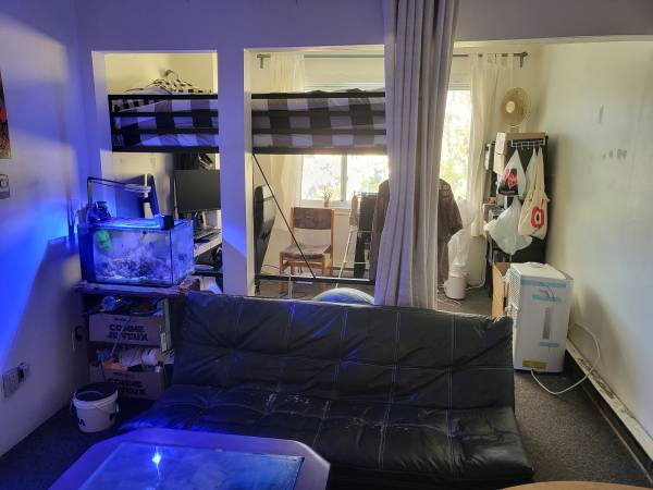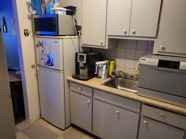 Inclus la possibilité de reprendre des meubles et appareils du locataire précédent : lit mezzanine, lave-vaisselle portable, laveuse portable, petite table.