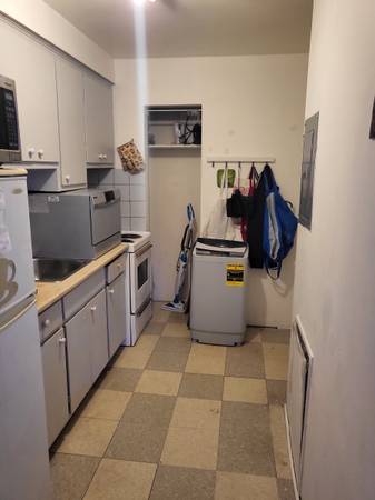 Possibility of buying furniture and appliances from previous tenant: loft bed, countertop dishwasher, portable washing machine, coffee table.