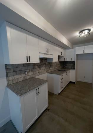 Studio rénové avec matériaux modernes : planchers en bambou, comptoirs en granite et céramique de porcelaine de haute qualité.