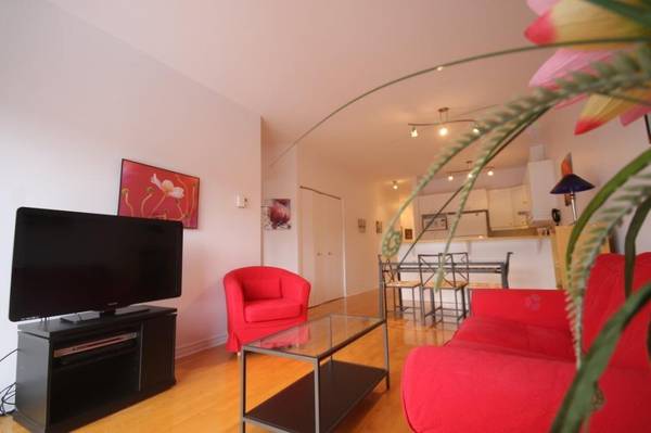 Completely furnished: high speed Internet, cable, television, DVD player, stereo, fridge, stove, fully equipped kitchen, linens, washer and dryer, micro-wave, hardwood floors, and balcony.