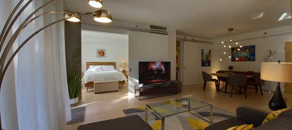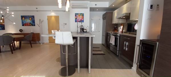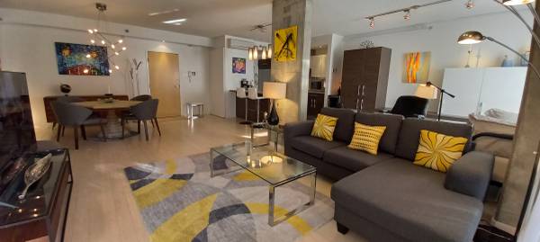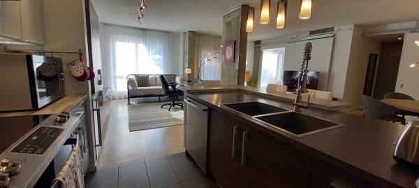 Located in a prestigious residence in the heart of Plateau-Mont-Royal, this is a modern concrete construction, very well soundproofed, with hardwood floors, air conditioning, and a high-quality European kitchen. Very bright and sunny, with large bay windows in all rooms, the condo is rented fully furnished and equipped. You just have to drop your suitcases!