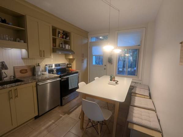 Fully furnished 4.5 garden level apartment with lovely backyard for rent! Hightlights include: