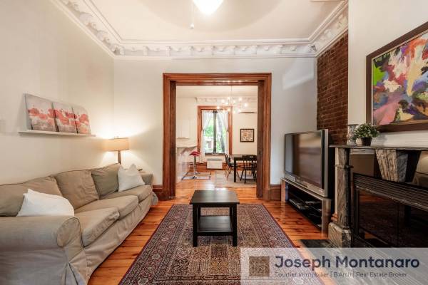 Two-level apartment, beautiful mouldings and beams on ceilings.