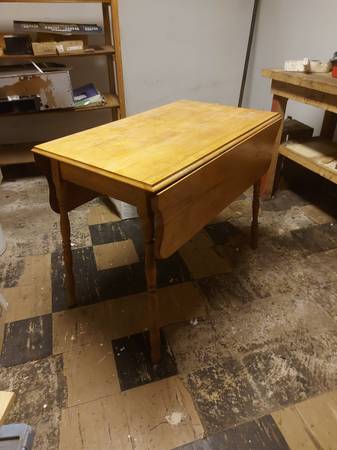 Solid hardwood (maple) two sided drop leaf table 21x36 inch folded to 42x36 fully opened.