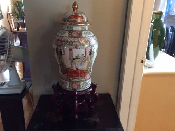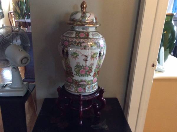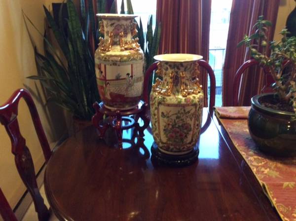 VARIOUS CHINESE VASES .FAMILLE ROSE.SOME SOLD ONLY AS A PAIR.INCLUDING WOOD STANDS.CONTACT ME FOR MORE INFO ,OR SIZES.FROM $175,00 TO $250,00 FOR LARGE ONES EACH.