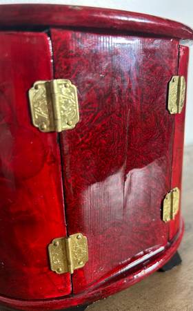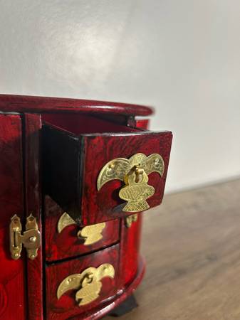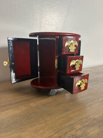 A stunning lacquered rosewood mini cabinet, perfect for jewelry, trinkets, or as a decorative piece.