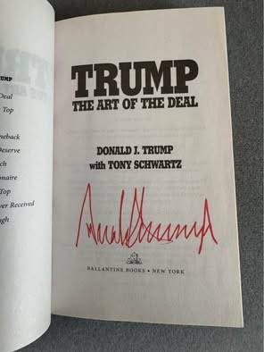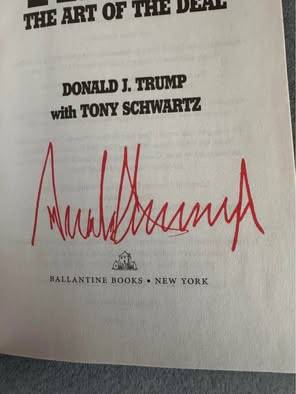 Autographed copy of Donal J. Trumps “The Art of the Deal” in paperback in perfect condition!! Includes a photo of the event as well as the admission ticket. Both are enclosed in the envelope.