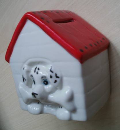 Dog House Piggy Coin Bank Puppy Bone Kid Money Ceramic Saving Box