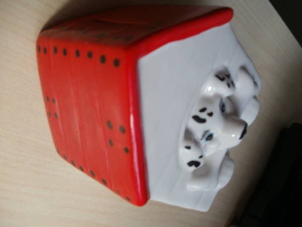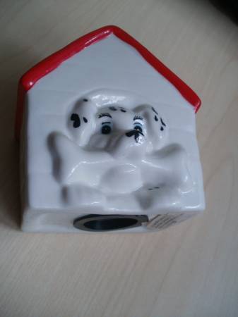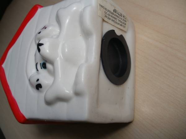 This is a beautiful ceramic Dog House Pretty Dog with bone in is mouth . / Ceci est une belle ceramique Chien dans sa niche avec os dans sa bouche