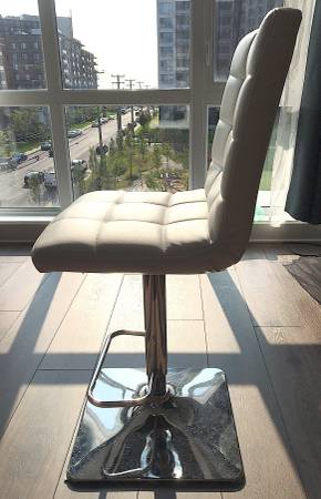 CorLiving high-back bar stools Xanier Collection at your service. Easy to move and can be set to different heights with ease. Stylish, comfortable and can be rotated up to 360 degrees. It can be bought individually for $200 or as a set of two for $300.