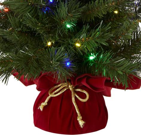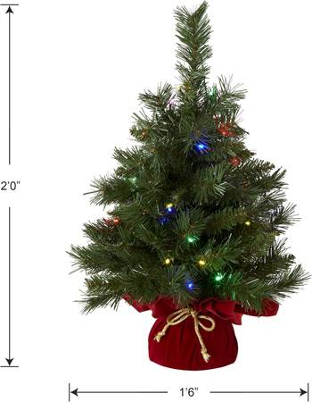 National Tree Company Pre-lit Artificial Mini Christmas Tree | Includes Cloth Bag Base | Majestic Fir - 2 ft