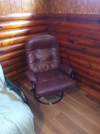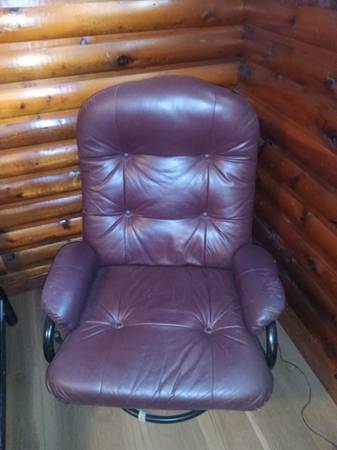 Leather , dark purple recliner . Recliner is 30" W x 45 "H .