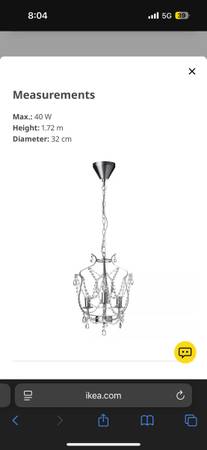 Bring a touch of elegance and modern sophistication to your home with this IKEA Kristaller chandelier. Details: • Material: Glass prisms, steel base with acrylic coating • Size: 1.72m tall × 32cm...