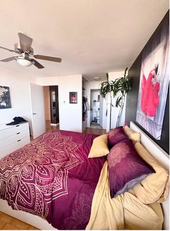 This beautiful 2-bedroom, 2-bathroom condo features floor-to-ceiling windows and a private balcony offering breathtaking panoramic views of Mount Royal.