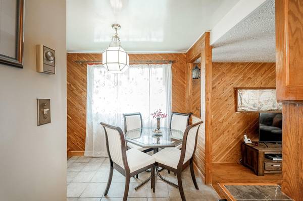 Bright Dinette Area: Adjacent to the kitchen, the dinette is surrounded by natural light and wood-paneled walls, providing a cozy, casual setting for meals.