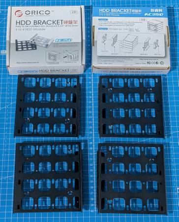 i) Orico hard drive or ssd bracket. It can hold up to 4 3.5" hard drivers or ssd drives. It can hold up to 8 ssd drives or 2.5" hard drives (extra brackets are needed for this). Each box contains 2 pieces and askign price is $15 per box. See the picture to see how it is installed.