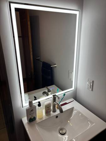 Lit, commode, table de nuit; canapé; bureau, chaise de bureau, classeur; table de cuisine, îlot de cuisine, et ustensiles de cuisine tous inclus.