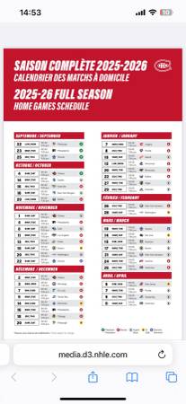 MONTREAL CANADIENS----EVERY GAME IN SECTION 103 ROW G!! 2 TICKETS/2 BILLETS....Also possible 4 tickets per game/ Aussi possible pour 4 billets par match CALL/APPELLE ........514-862-513one TOUTES...