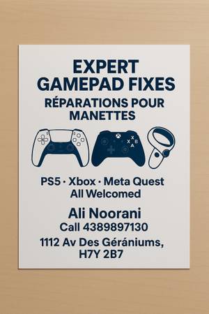 Solve your stick drift problem in less than a day. Ps5 controller/Meta quest controller /Xbox controller Repair. Résolvez votre problème de stick drift en moins d'une journée. Réparation de manettes...