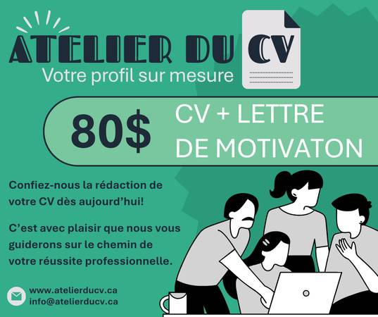 Atelier du CV - CV et lettre de motivation sur mesure - atelierducv.ca (Montreal)